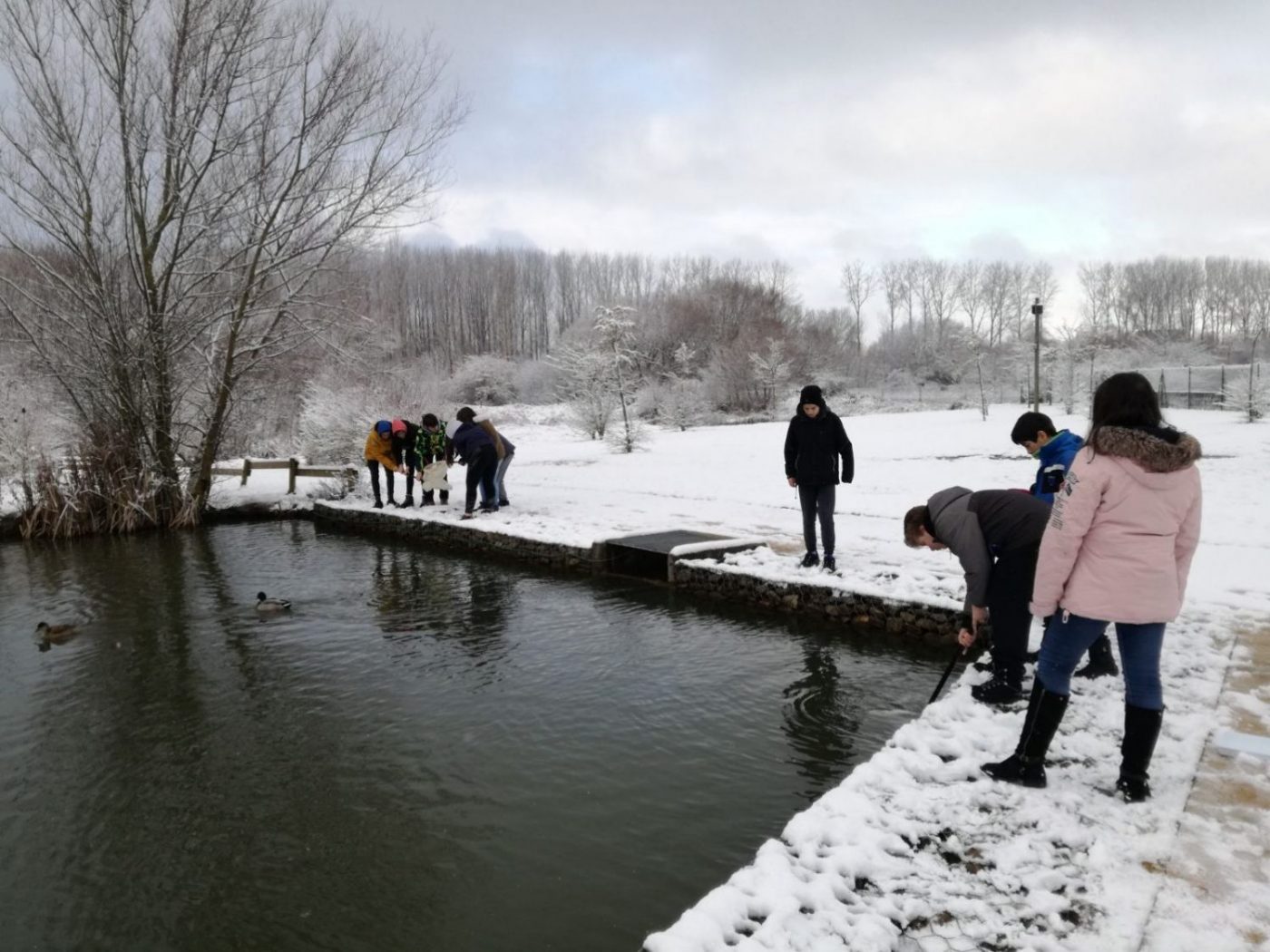 Las dos clases de 1º de ESO visitaron ayer el centro de interpretación Ataria en el humedal de Salburua. De esta forma se acercaron a conocer más de cerca la fauna y la flora autóctonas guiados por el personal del centro. Como además se toparon un bonito manto blanco de nieve, hubo ocasión incluso de hacer un muñeco.